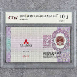 2021年3克联合国生物多样性大会金币证书