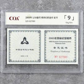 2003年1/10盎司观音幻彩金币证书