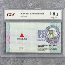 2019年30克北京世园会银币证书