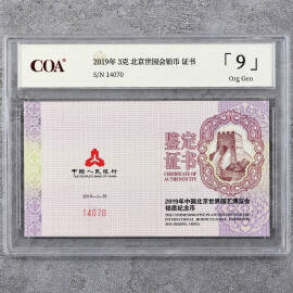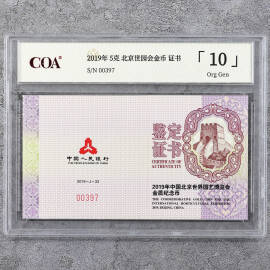 2019年5克北京世园会金币证书