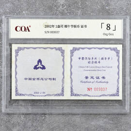 2002年1盎司端午节银币证书