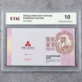 2011年1/4盎司上海黄金交易所成立10周年金币证书