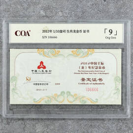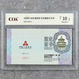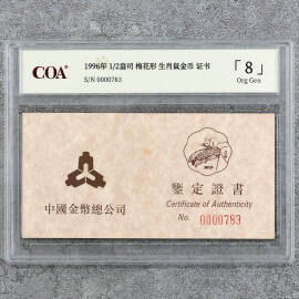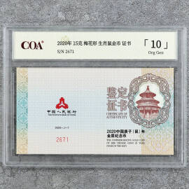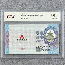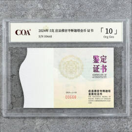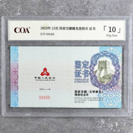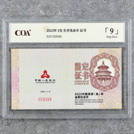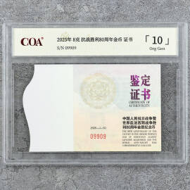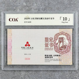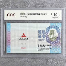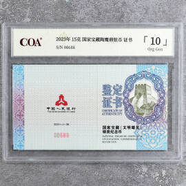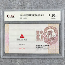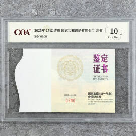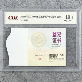 2025年15克方形国家宝藏锦护臂彩金币证书