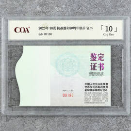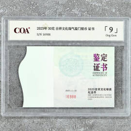 2025年30克吉祥文化蔓蔓日茂银币证书