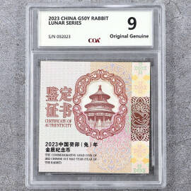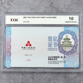 2023年3克生肖兔金币证书