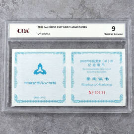 2003年5盎司方形生肖羊银币证书