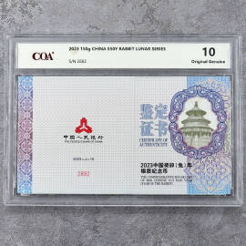 2023年15克生肖兔彩银币证书