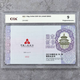 2021年150克方形生肖牛银币证书