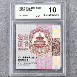 2022年3克生肖虎金币证书