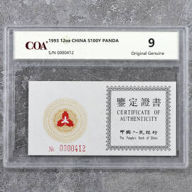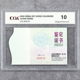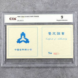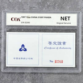 2000年5盎司方形京剧艺术第2组彩银币证书
