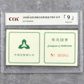 1995年22克传统文化第1组孟子银币证书