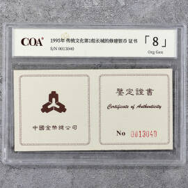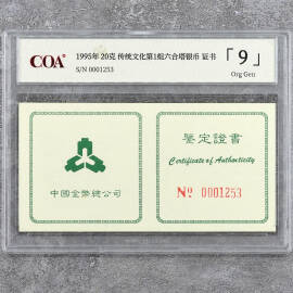 1995年22克传统文化第1组六合塔银币证书