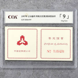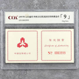 1997年1/10盎司传统文化第2组京剧艺术金币证书
