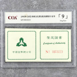 1995年22克传统文化第1组京剧银币证书