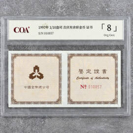 1997年1/10盎司吉庆有余彩金币证书
