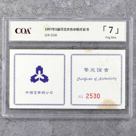 1997年5盎司吉庆有余银币证书