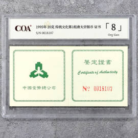 1995年22克传统文化第1组唐太宗银币证书